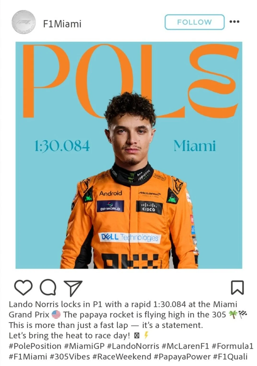 #PolePosition #MiamiGP #LandoNorris #McLarenF1 #Formula1 #F1Miami #305Vibes #RaceWeekend #PapayaPower #F1Quali